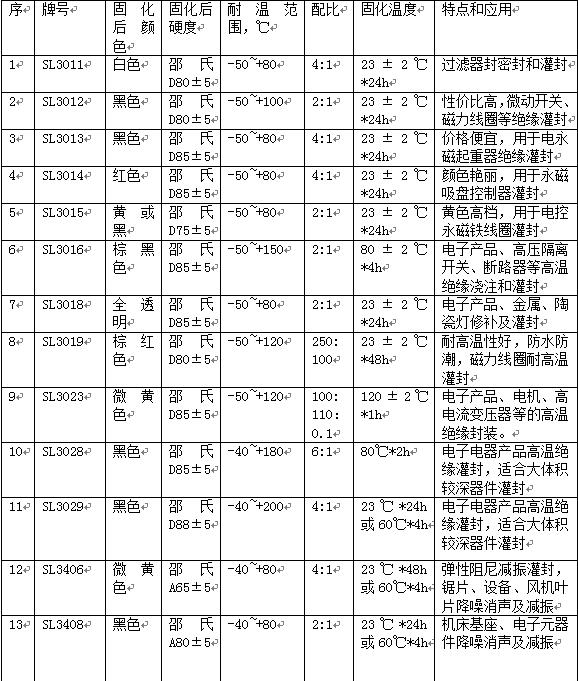 通過上表我們對于絕緣灌封膠的有了初步的了解,所以在做灌封膠的選擇時就會更懂得如何分辨,也知道耐溫等級,以及固化后的硬度是關(guān)鍵,另外還要根據(jù)每個工廠實際的可以固化的操作工藝來選擇,如果不清楚也可以直接與世林的工程技術(shù)人員咨詢:0731-28612221。