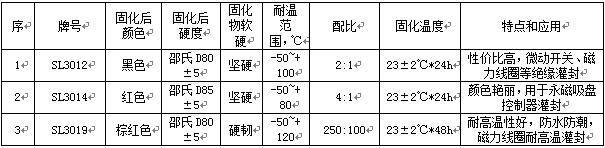 世林紅色灌封膠,牌號(hào)是SL3014膠,還有一款,顏色稍微偏深的紅色灌封膠SL3019,具體見下表: