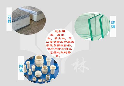 可用于石材與石材、石材與玻璃的復(fù)合、石材工業(yè)中用來補(bǔ)強(qiáng)、填補(bǔ)具有多孔及表面的裂紋、小孔洞、砂眼、螞蟻路以及凸凹不平的多種天然石材和混凝土、提高表面質(zhì)量、也可用于玻璃紗網(wǎng)加強(qiáng)易碎石板,提高成品率。
