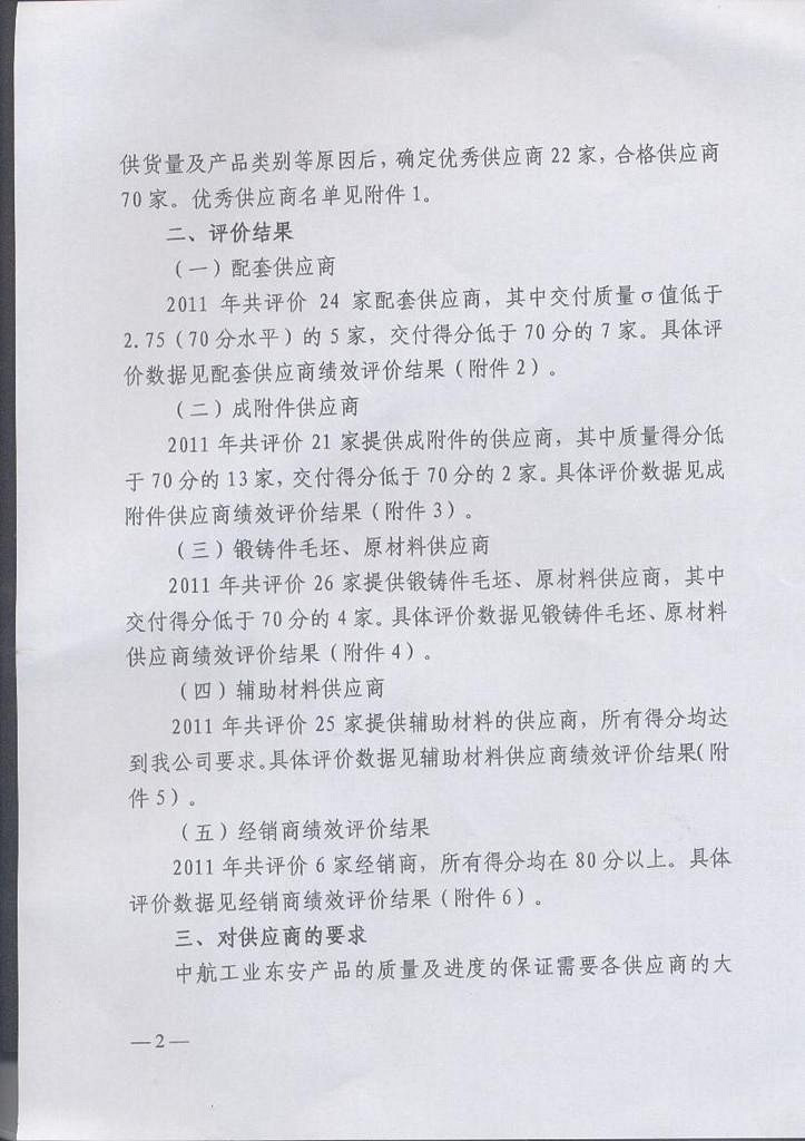 因高溫密封膠產(chǎn)品榮獲國營二0廠(中航工業(yè)東安發(fā)動機(jī)集團(tuán)公司)2011年度優(yōu)秀供應(yīng)商稱號