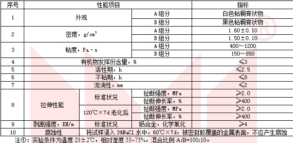 3 密封膠的配比(質(zhì)量比):A:B=100:10。根據(jù)需要,準確秤量。用油漆刮刀將其調(diào)成顏色均勻一致即可刮涂;也可慢慢加入丙酮與乙酸乙酯混合溶劑,依次調(diào)勻后進行刷涂。